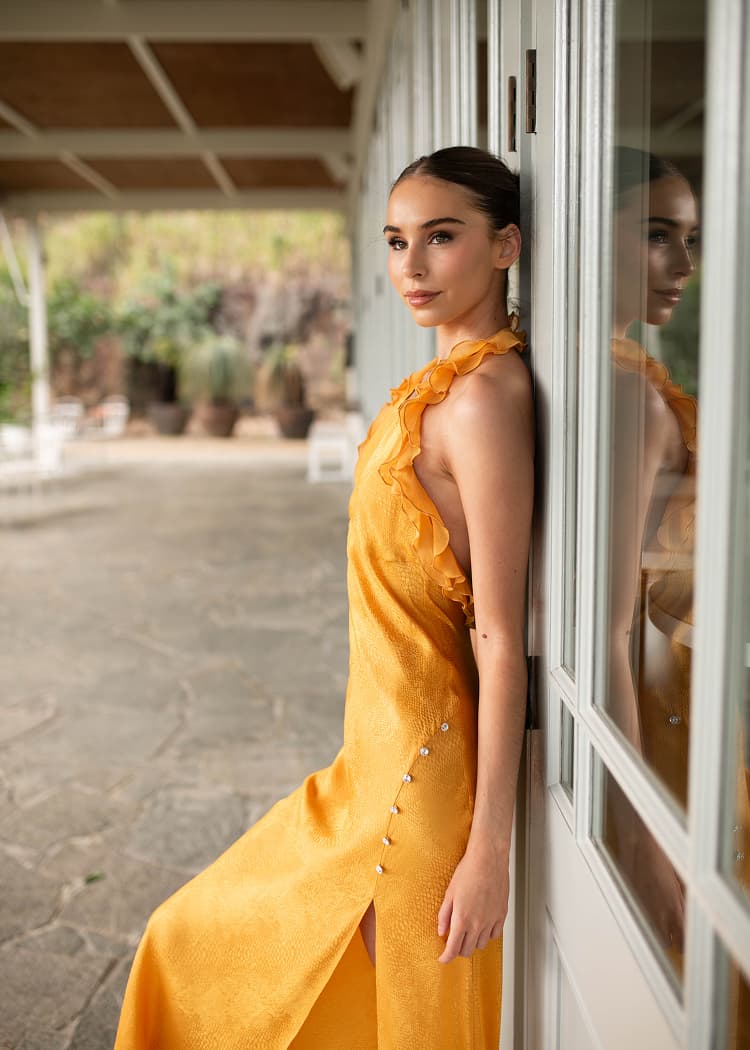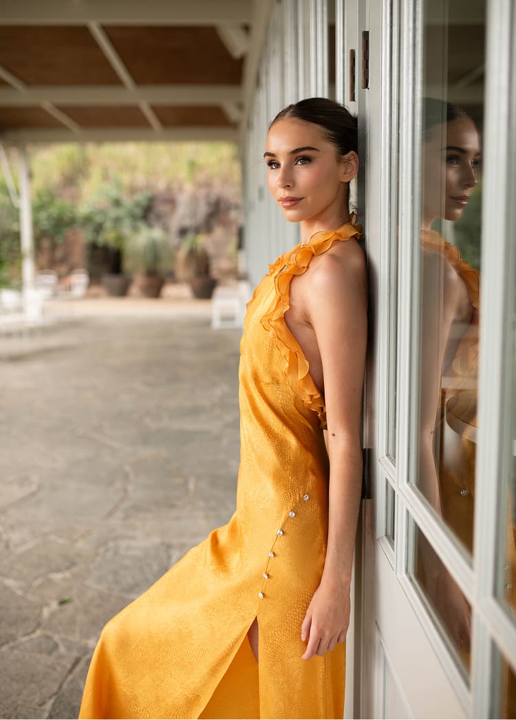 The Deep V-halter neck Dress captures both bold sensuality and feminine grace, making you shine at any social gathering. This design is available in two variations: a playful mini dress and an elegant long version that accentuates the body’s natural curves.